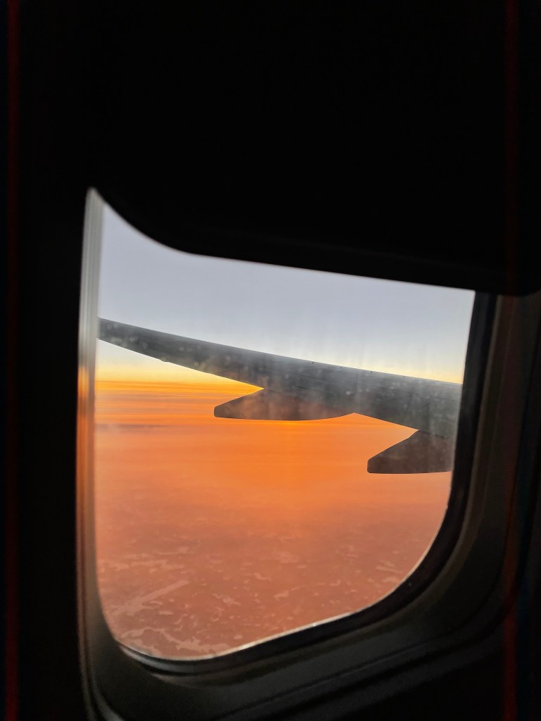 Anyways, it lost its charm after the first 30 mins. It frustrated me that the colours didn’t change, and the warmth of the glistening orange outside did not match the uncomfortable plane breeze inside. This is where I wished I sat on the aisle instead so I could grab my jacket from the overhead compartment.